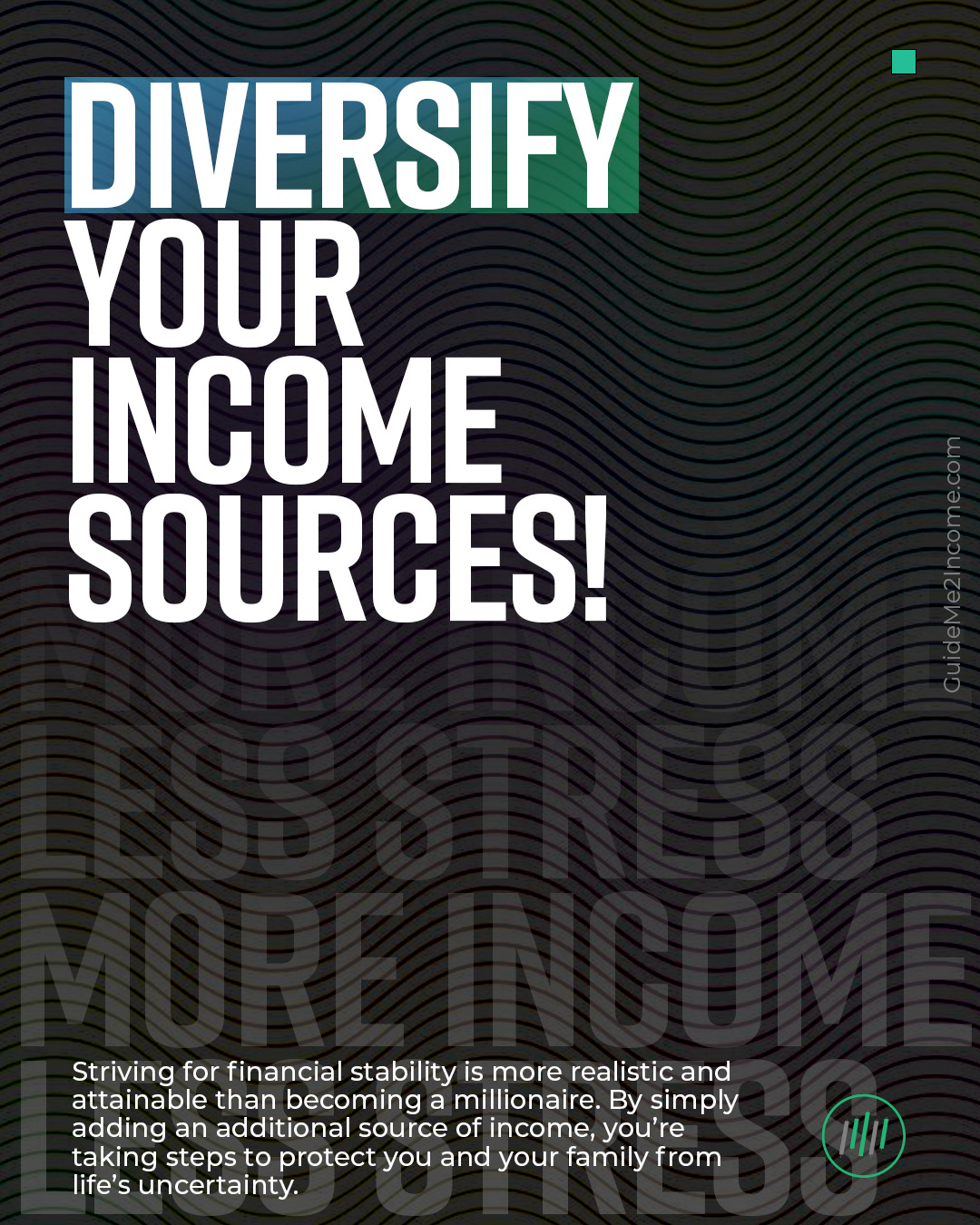 Animated graphic of a social media post for GuideMeToIncome.com. I wanted to replicate the multi-slide post into a story/reel post. Videos were made with After Effects.